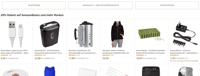 20% Rabatt auf AmazonBasics und mehr Marken