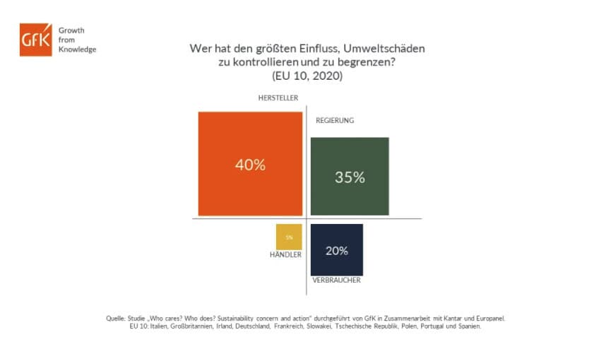 Die GfK-Daten für das Jahr 2020 zeigen, dass Käufer zunehmend der Ansicht sind, dass ihr Kaufverhalten einen positiven Einfluss auf die Umwelt haben kann. Herstellern wird mit 40 Prozent nach wie vor der größte Einfluss auf die Kontrolle und Begrenzung von Umweltschäden zugeschrieben, gefolgt von Regierungen mit 35 Prozent. Mit nur 5 Prozent werden die Einzelhändler als am wenigsten verantwortlich betrachtet. Drei von zehn Haushalten achten darauf, dass die von ihnen gekauften Artikel nicht in Plastik verpackt sind. In Zeiten von COVID-19, wo Hygienestandards Leben retten können, ist es umso bemerkenswerter, dass so viele Verbraucher Verpackungsabfälle vermeiden möchten – dies spiegelt sich in ihrem Einkaufsverhalten wider.