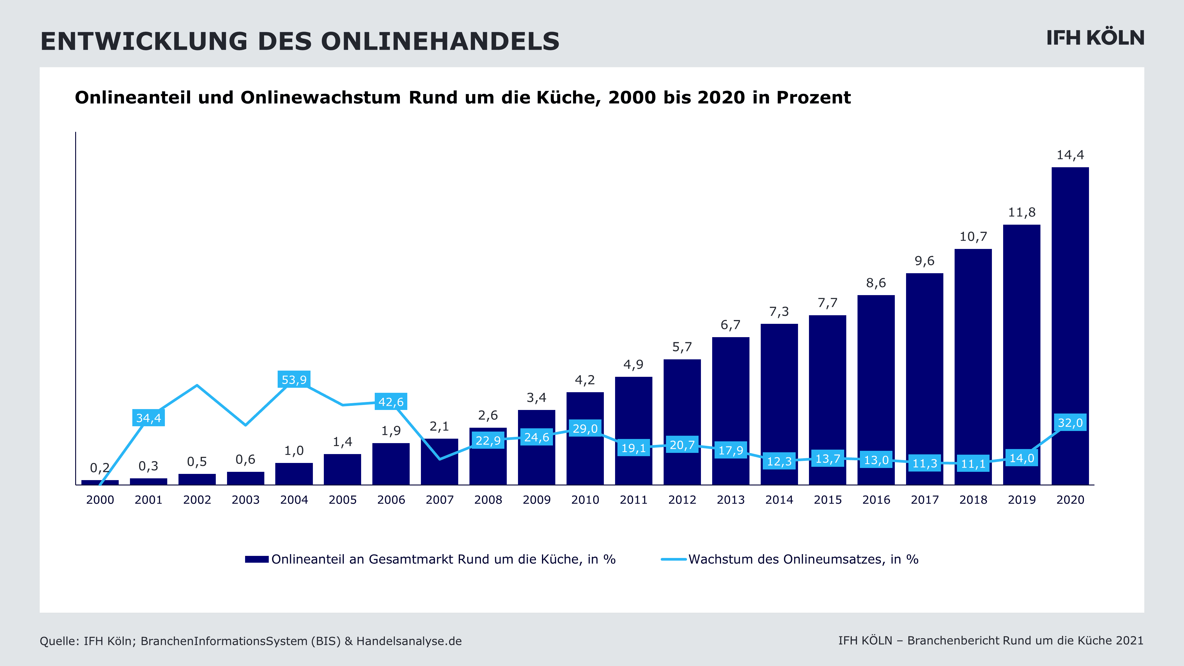 Neuer Branchenbericht „Rund um die Küche“ des IFH KÖLN erschienen. Fazit: Die Coronakrise bescherte dem Markt einen unverhofften Wachstumsimpuls, der jedoch 2022 verbraucht sein dürfte. Das Wachstum des Onlinegeschäfts im Markt wird anhalten.