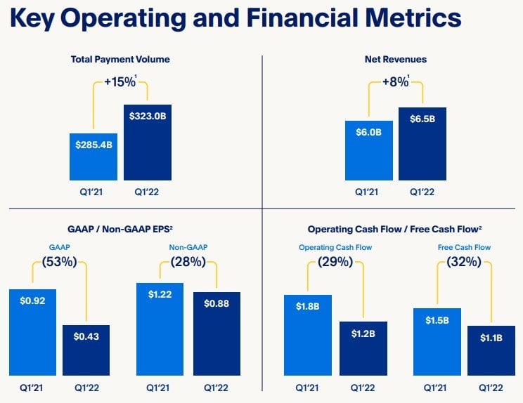 Dan Schulman, Präsident und CEO, kommentiert das Ergebnis: „Ich bin erfreut, dass die Ergebnisse des ersten Quartals Ergebnisse unsere Erwartungen bei Umsatz und Gewinn übertroffen haben, und wir weiterhin schneller wachsen als als der E-Commerce wächst. Wir können stolz auf vieles sein, aber aber wir wissen, dass wir es noch noch besser machen können. Wir sind in der glücklichen Lage die Gelegenheit zu haben, die Zukunft die Zukunft der digitalen Wirtschaft indem wir Finanzdienstleistungen Finanzdienstleistungen und Handel zu gestalten.“