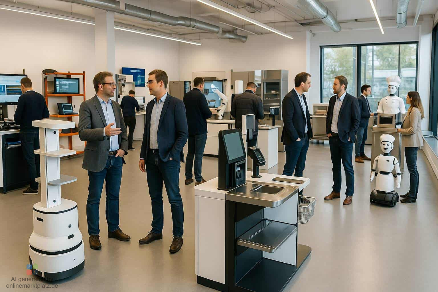 Die Retail Garage zeigte insgesamt 25 Erlebnisstationen auf rund 300 Quadratmetern Fläche. Zu sehen waren unter anderem Serviceroboter von MetraLabs, Kassensysteme von Star und Diebold Nixdorf, ein digitales Energiemanagement-Tool von EMD Retail sowie 3D-Sensorik von crosscan. Weitere Technologieanbieter wie pi4_robotics, Toshiba, ITAB, svarmony Technologies, Okatlite, tierwohl.tv und MSM.digital trugen ebenfalls zur Vielfalt bei.