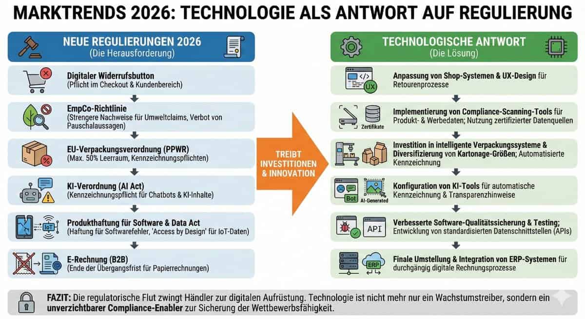 Das Jahr 2026 ist kein Jahr für Experimente, sondern für Exekution und Compliance. Der „Wild West“-Charakter des frühen E-Commerce ist endgültig vorbei. Erfolgreiche Händler werden 2026 jene sein, die: