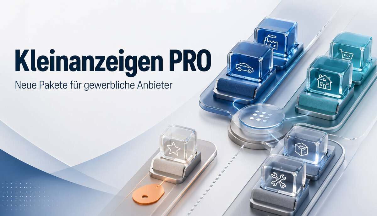Kleinanzeigen stellt Kleinanzeigen PRO ab dem 4. Mai 2026 auf branchenspezifische Pakete um. Neue Kunden wählen künftig zwischen PRO Basic, PRO Power und PRO Premium. Gleichzeitig werden kostenfreie gewerbliche Anzeigen je nach Kategorie auf bis zu drei Inserate begrenzt; Ende Mai startet ein Spezialtarif für Waren bis 25 Euro Verkaufspreis.